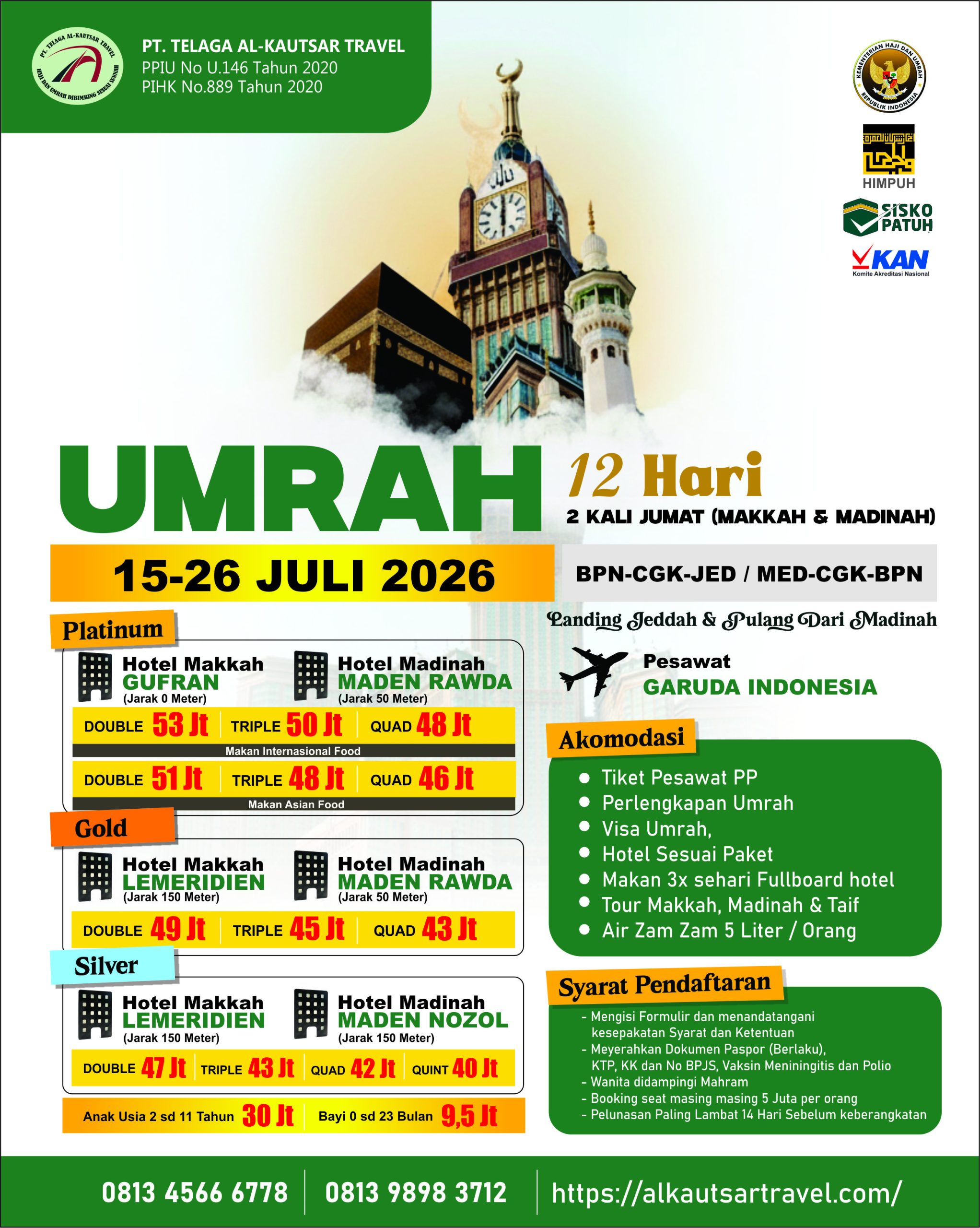 Kami berkomitmen melayani dengan senang hati dan berusaha memberikan yang terbaik dalam pelayanan dari sejak administratif hingga berangkat mendampingi, melayani kebutuhan untuk kenyamanan selama dalam rangkaian perjalanan menunaikan Haji ataupun Umrah di Makkah dan Madinah.